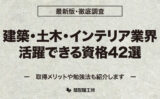 ここでは、建築・土木・インテリア業界で役立つ代表的な資格を42選紹介しています。